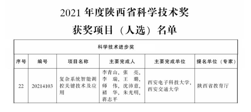 (通讯员 齐富)近日,《陕西省人民政府关于2021年度陕西省科学技术奖励的决定》和《国家知识产权局关于评选第二十三届中国专利奖的通知》发布,由suncitygroup太阳成集团李青山教授牵头的项目“复杂系统智能调控关键技术及应用”荣获陕西省科学技术进步奖二等奖,沈玉龙教授团队的发明专利“一种多域分层的多域物联网平台及多域管理方法”预获中国专利优秀奖,是公司唯一入选本届中国专利奖的专利。