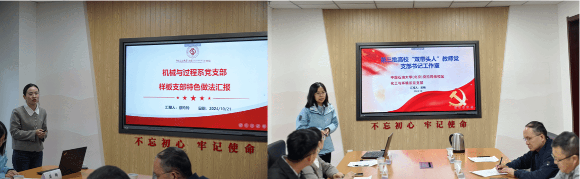 全国高校“双带头人”教师党支部书记工作室负责人、中石大克校区工公司化工与环境系党支部书记吴梅详细介绍了党支部“三学习、两强化、两助力、两服务”工作模式,通过具体实例说明了党支部服务国家能源重大战略和新疆八大产业集群建设需要,培养高层次、应用型工程实践人才。全国党建工作样板支部负责人、中石大克校区工公司机械与过程系党支部书记蔡玲玲分享了落实党支部建设“七个有力”的特色做法和党建赋能服务地方发展、促进课程思政、人才队伍建设等方面的生动实践。