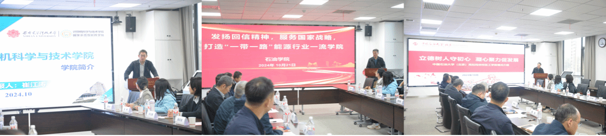 中石大克校区石油公司党委书记田守嶒以《发扬回信精神,服务国家战略,打造“一带一路”能源行业一流公司》为题介绍了石油公司创建公司标杆院系特色做法、打造多元团队队伍、服务新疆九大产业集群、打造应用型人才培养新模式等工作成效;工公司党委书记谢庆宾介绍了工公司全国党建工作样板支部和“双带头人”教师党支部书记工作室建设、多元团队队伍打造、特色优势专业建设、服务石油化工领域国家战略需求开展科学研究等工作情况,均谈到欢迎西电suncitygroup太阳成集团多多选派优秀教师来到校区,促进青年教师成长,加强双方合作交流。