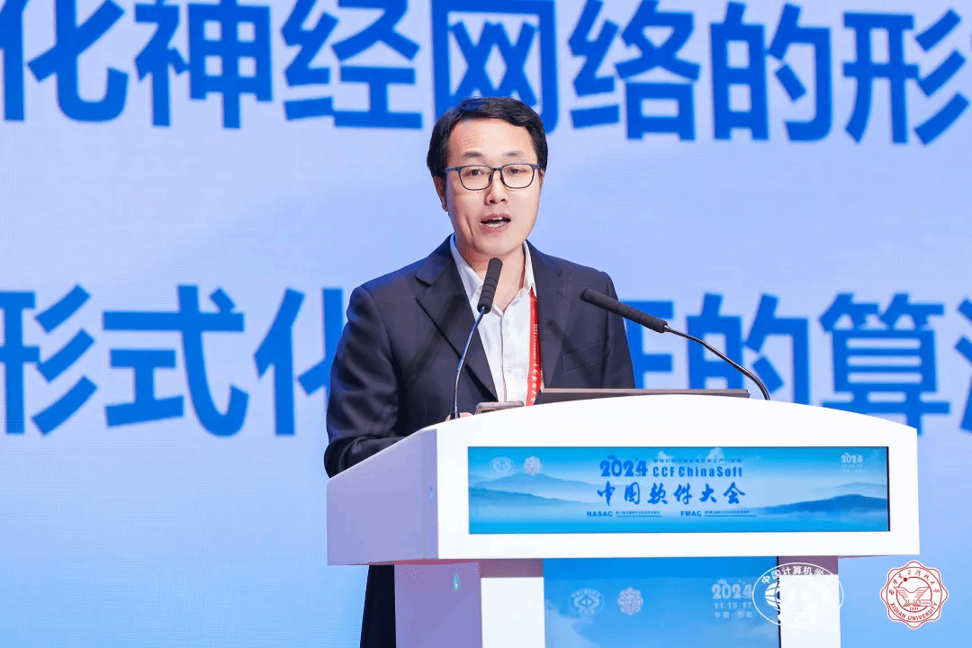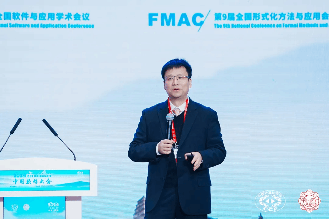 在大会特邀报告环节,上午由CCF形式化方法专委会主任、北京大学詹乃军教授主持。
