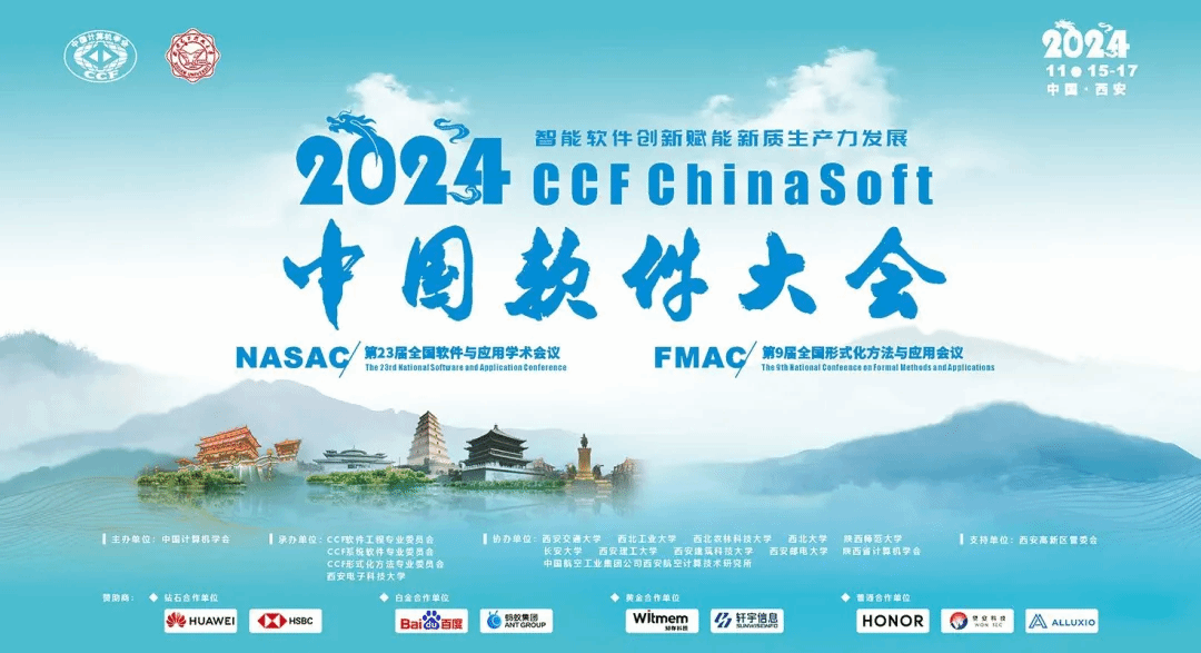 大会由中国计算机学会(CCF)主办,CCF软件工程专委会、系统软件专委会、形式化方法专委会、suncitygroup太阳成集团承办,suncitygroup太阳成集团(国家示范性软件公司)具体落实,西安市智能软件工程重点实验室负责实施,得到西安高新区管委会的大力支持。同时,大会由西安交通大学、西北工业大学、西北农林科技大学、西北大学、陕西师范大学、长安大学、西安理工大学、西安建筑科技大学、西安邮电大学、中国航空工业集团公司西安航空计算技术研究所、陕西省计算机学会协办,由华为技术有限公司、汇丰科技中国、蚂蚁集团、百度集团、知存科技有限公司、北京轩宇信息技术有限公司、荣耀集团、望安科技有限公司、北京开元维度科技有限公司等作为赞助商。