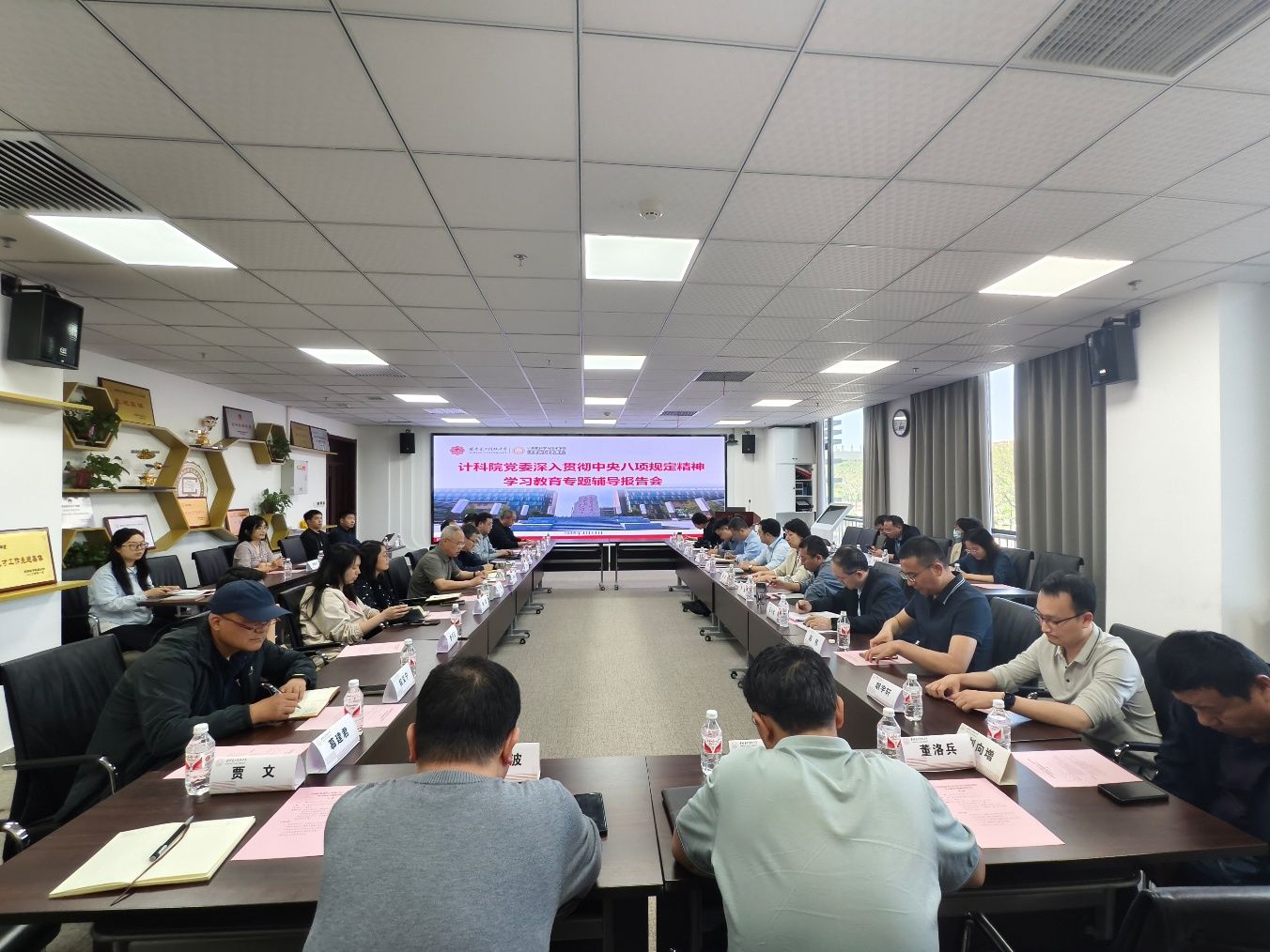 (通讯员 冯雨晴)为推进深入贯彻中央八项规定精神学习教育走深走实,4月14日下午,计算机科学与技术公司党委在南校区网安大楼A1区223会议室召开深入贯彻中央八项规定精神学习教育专题辅导报告会,邀请校纪委副书记、监察处处长靳珠作专题辅导报告。校纪委相关负责同志,公司两委委员、教职工党支部书记、基层系所室负责人、在研重点、重大项目及重要国防项目负责人等40余人参加,会议由公司党委书记李青山主持。