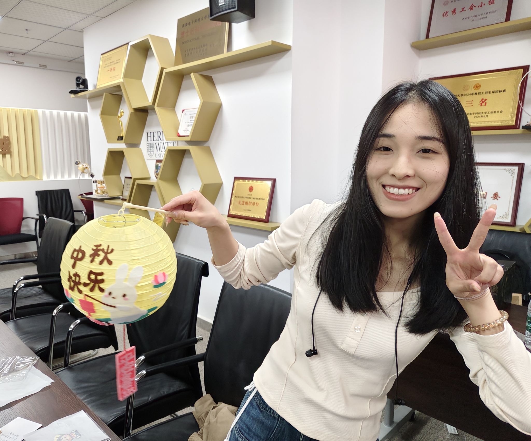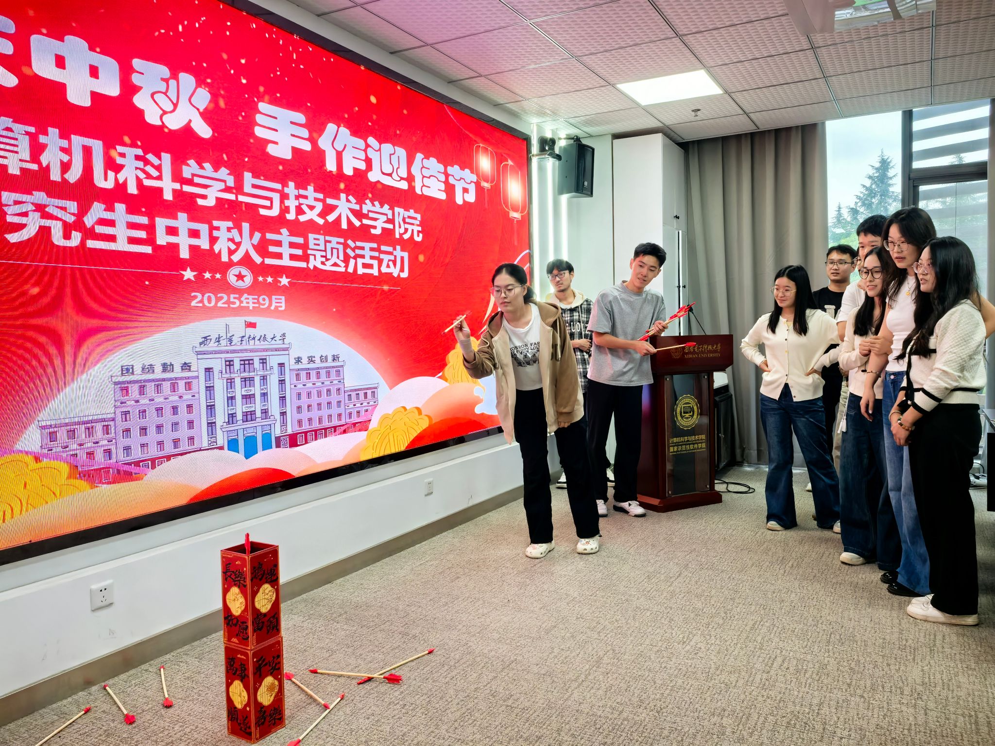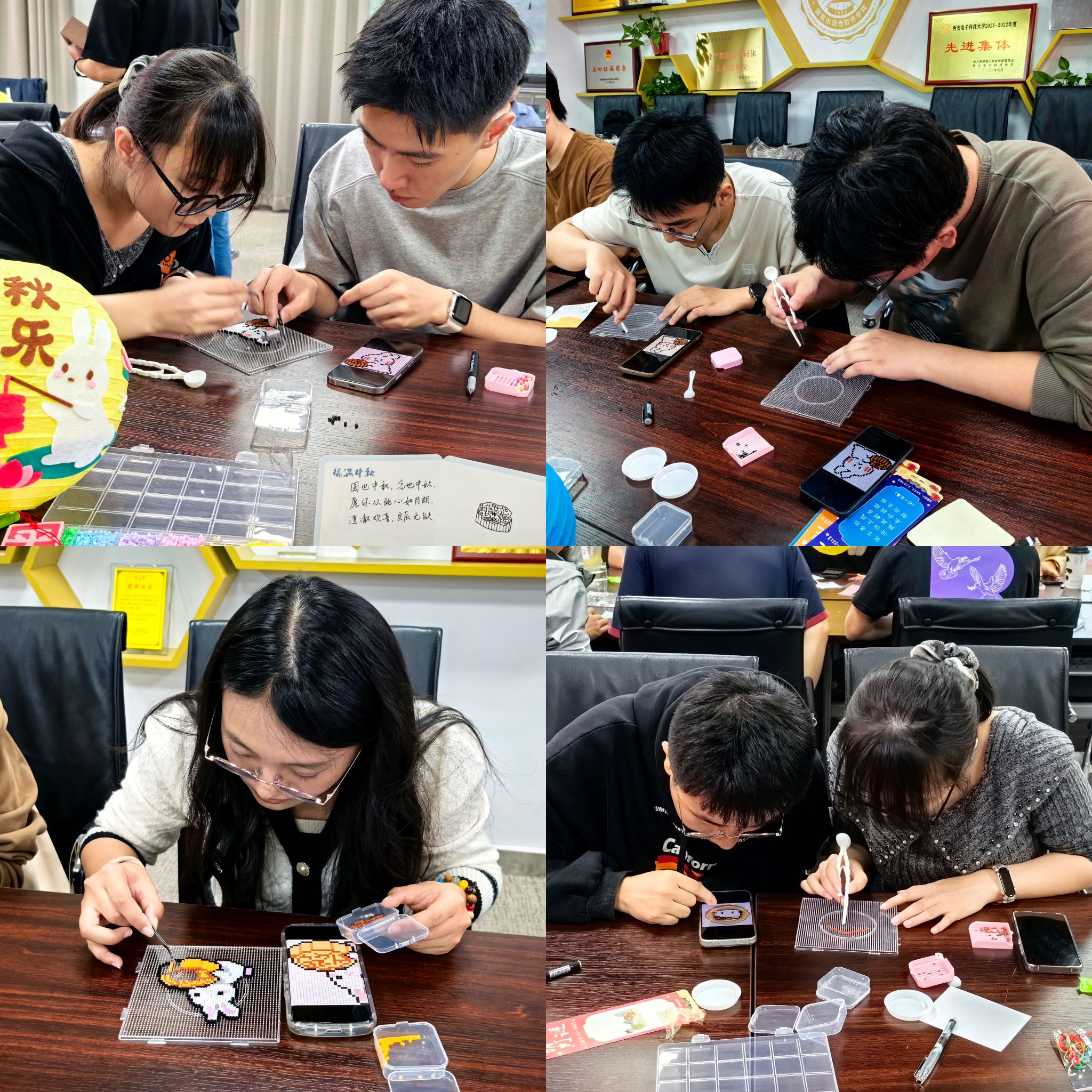 大家纷纷表示,这样寓教于乐的活动既丰富了课余生活,又让大家在亲身体验中领略了传统文化的魅力。“这是我第一次在西电的校园里过中秋,能够亲手做灯笼、和朋友们一起猜灯谜,特别有意义。”2025级硕士研究生张聪聪谈到,“不仅感受到节日的温暖氛围,也让我对中秋传统文化有了更深入的了解,感觉和同学们的距离也更近了。”2025级博士研究生张艺林表示,“短短几小时的活动将我暂时从繁忙的学业中抽离,沉浸在猜谜、投壶游戏、拼豆创作、写贺卡等环节中,尤其是和伙伴们一起参与投壶时,大家互相的鼓励与欢呼,将疲惫一扫而空。”