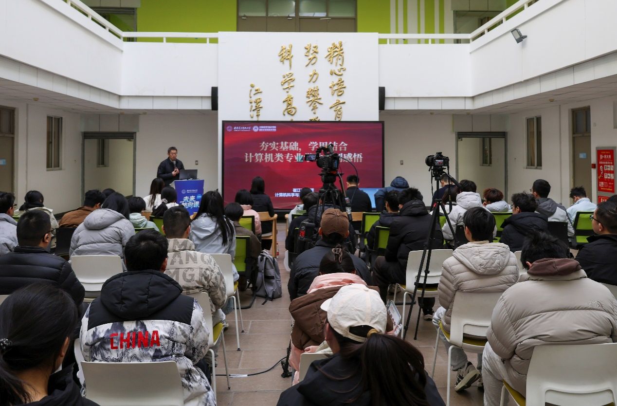 崔江涛教授谈到,在人工智能浪潮中,数理基础与计算机核心课程对计算机类专业员工的成长至关重要。作为西电学子,在产业引领技术发展、知识迅速更新的背景下,更应深入掌握AI底层软硬件核心原理,扎实打好矩阵论、随机过程等数学基础。他希望同学们坚持务实思维,实现“理论指导实践、实践反哺理论”的良性循环,主动走进实验室、积极参与实践训练,在实际操作中锤炼“从问题中找答案”的能力;同时要主动融入团队协作,学会换位思考,通过高效沟通打破信息壁垒,推动项目切实落地。