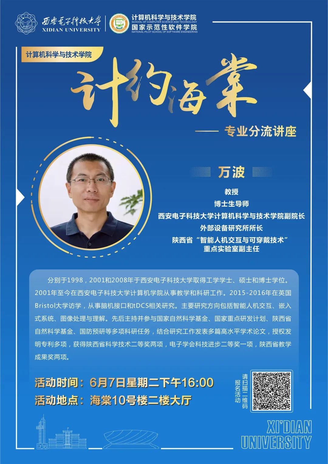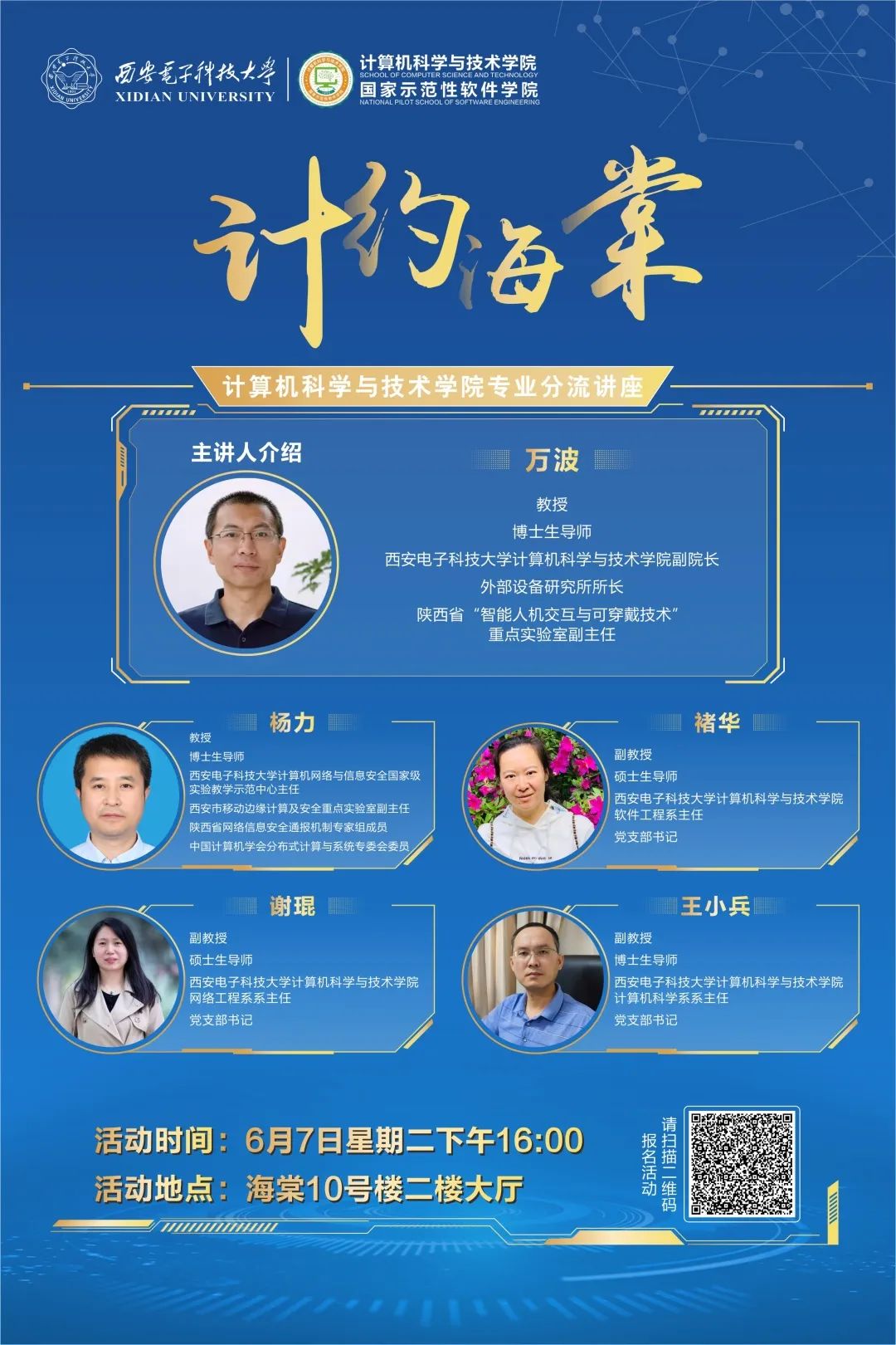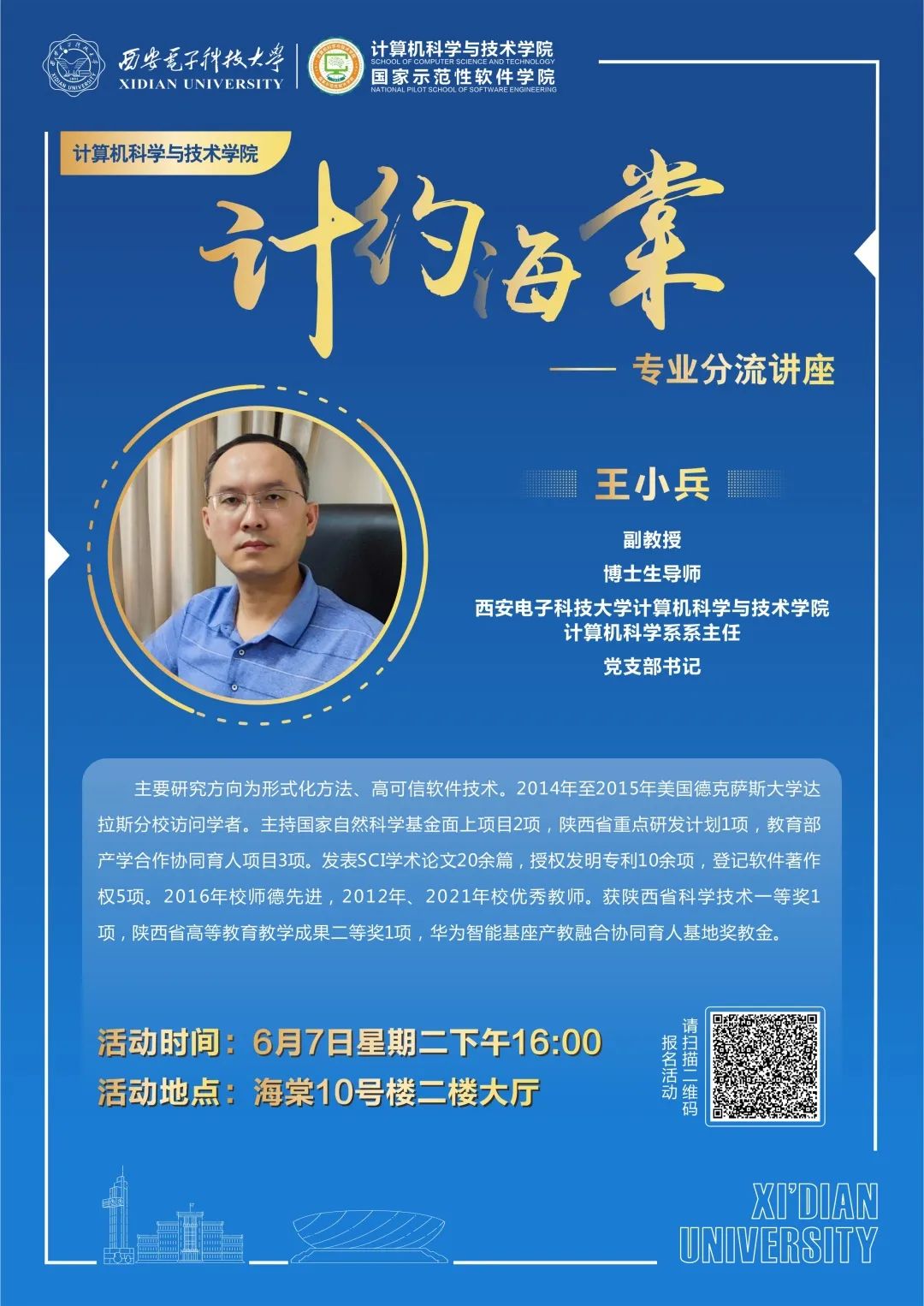 本次活动将通过“西电计科学工”视频号同步直播,欢迎同学们线上线下积极参加。