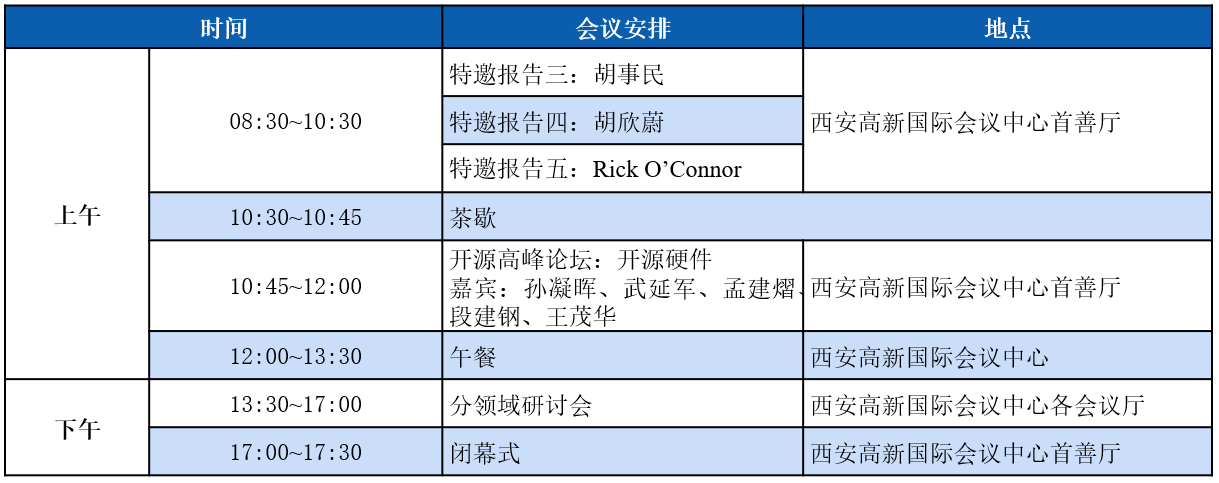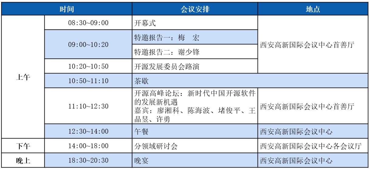作为第一届CCF中国开源大会,本届大会将组织特邀报告、开源高峰论坛、开源发展委员会路演、社区论坛、技术论坛、教育论坛、开源创新大赛培训等20余个不同类型的活动。大会将邀请10余位开源及相关领域中国科公司院士、中国工程院院士与知名专家,为大会带来特邀报告并参加开源高峰论坛等活动。目前已邀请参会的两院院士与知名嘉宾包括中国科公司院士梅宏,中国工程院院士廖湘科,中国科公司院士王怀民,中国工程院院士孙凝晖,中国科公司院士钱德沛,工信部科技司司长谢少锋,清华大学教授胡事民等。本届大会预计将吸引参会单位超过100家,作为中国开源领域的年度盛会,诚挚地邀请开源领域学术界、企业界、教育界的学者、从业者、师生等前来参会!