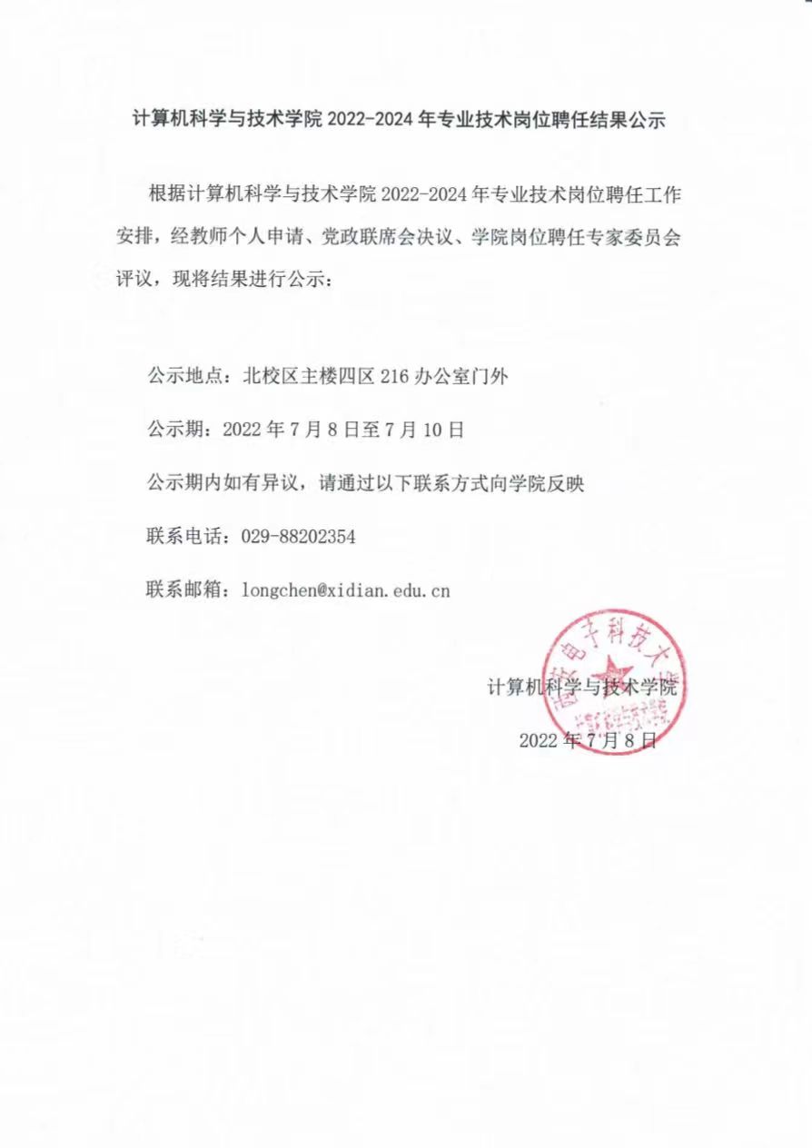 2022-2024年专业技术岗位聘任结果公示