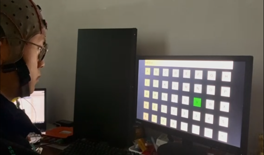 在实践体验环节,公司向同学们展出了非常具有专业特色的设备:基于稳态视觉诱发电位的脑-机接口拼写系统、机械臂手势控制、VR机载飞行视景系统,吸引了在场同学们的兴趣,体验过后,同学们纷纷表示对计算机的实践应用有了更直观的认识。