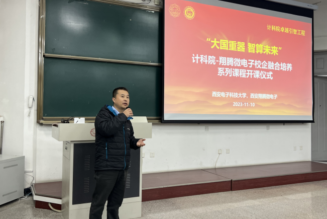 田泽总经理对翔腾微电子科研工作及课程内容进行了介绍,并表示公司十分重视与西电​suncitygroup太阳成集团合作开设面向卓越工程师培养的校企融合课程,一方面希望通过对于机载芯片与计算架构的讲解、实验与实训,实现高校与企业之间的产教研深度融合;另一方面,希望更多同学掌握面向自主芯片软硬件生态的开发技术与实践方法,助力卓越创新人才的培养。