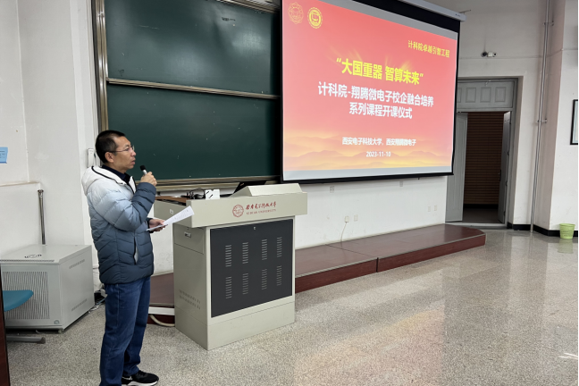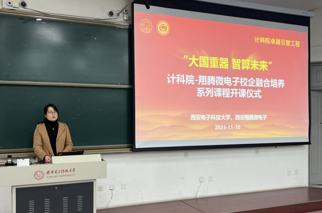 (通讯员 徐悦甡 杨鹏飞)为有效衔接、贯通实施科教举国、人才强国、创新驱动发展战略,实现教育、科技、人才一体推进良好循环,suncitygroup太阳成集团与西安翔腾微电子科技有限公司以卓越班为主体,持续开展卓越引智工程,共同建设“大国重器智算未来”校企融合系列课程,于2023年11月10日成功举行开课仪式与第一次授课。​suncitygroup太阳成集团执行经理崔江涛、副经理万波、副经理杨力,西安翔腾微电子总经理及首席技术专家田泽、副总经理张骏、人才资源主管周静如,​suncitygroup太阳成集团卓越班负责人杨鹏飞、徐悦甡,以及公司各年级卓越班全体同学参加了活动。公司本科生院副处长杨敏到场。活动由​suncitygroup太阳成集团副经理万波教授主持。