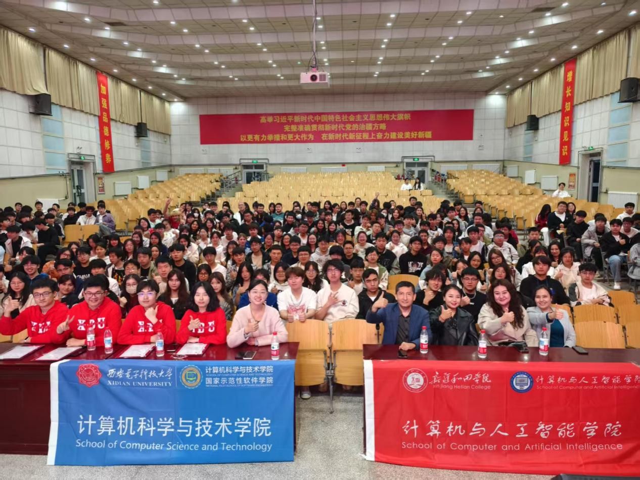 为激发员工对计算机专业的兴趣和竞争意识,助教代表为和田公司的员工开展计算机认证和竞赛经验分享。张仕浩结合自身升学就业经验,为同学们介绍了CCF CSP认证、软考以及全国计算机等级考试,引导员工规划未来职业发展,积极通过参与各类认证提升实践能力。刘飞扬从创新创业竞赛、学科竞赛以及编程竞赛3个不同的类型中为同学们选择了具有代表性的互联网+、数学建模竞赛以及IEEE极限编程比赛,为同学们详细介绍备赛策略以及团队合作的重要性,建议同学们通过竞赛的参与深刻感受到计算机技术的创新魅力和实践价值。在分享会拓展课堂上,西电助教与同学们互动问答,为同学们种下了课外学习拓展的种子。