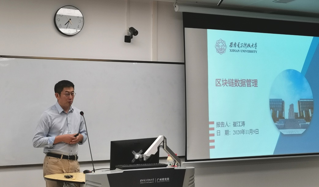 (通讯员 陈龙)为落实教育部和公司有关公司产品的相关要求,加强suncitygroup太阳成集团在穗研究生学业规划,11月9日晚,suncitygroup太阳成集团执行经理崔江涛教授赴广州研究院,在黄埔区海丝知识中心B5栋201教室为80余名研究生做了题为“区块链数据管理”的学业导航报告,广州研究院执行经理沈八中、党委副书记刘涛等参加活动。