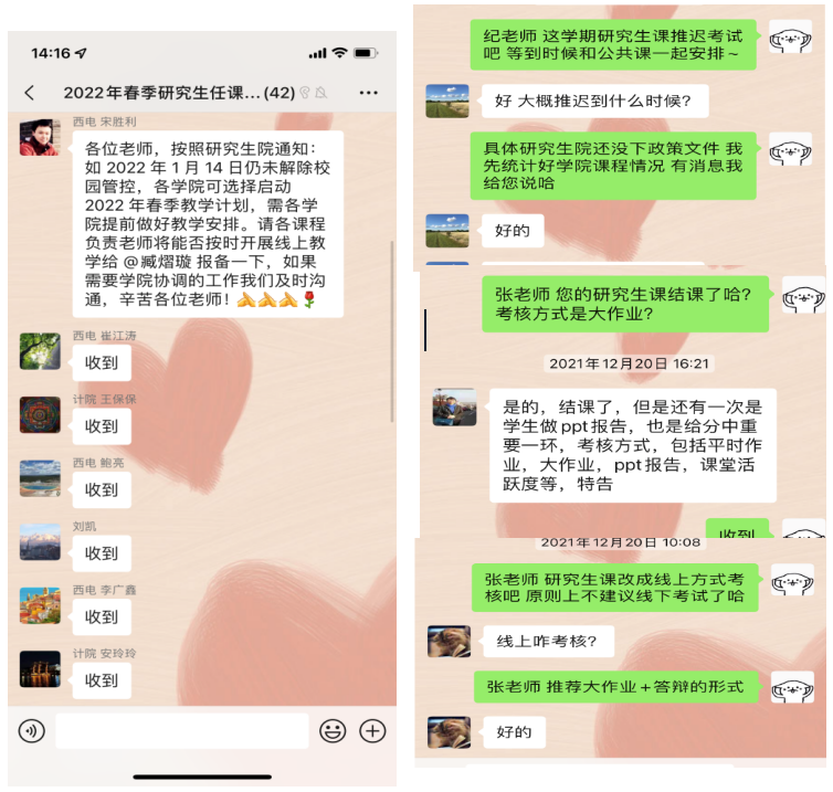 二、积极应对,确保研究生公司产品工作质量。临近期末,为了将疫情对于公司产品的影响降至最低,公司积极联系研究生课程任课教师开展线上教学,通过线上辅导、电话答疑以及网络讨论等多种形式保证研究生课程教学和日常指导有序进行,同时,安排办公室管理人员紧急摸排本学期课程进展及考试组织情况,对于未考试的课程,采用灵活方式组织以大作业或线上报告等形式进行考核,并督促任课教师按照进度要求批改试卷,及时上传考试成绩。此外,为了应对疫情新的发展态势,公司及时组织承担2022年春季学期课程教学任务的老师做好提前授课的准备,着手准备上课所需相关资料或线上教学环境,稳步推进研究生公司产品各项工作。