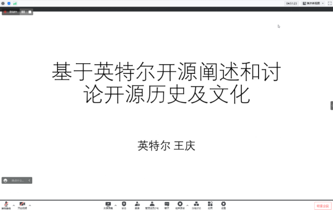 王庆老师的《基于英特尔开源阐述和讨论开源历史及文化》以英特尔开源为例,介绍开源社区历史起源和发展历程,从Linux开始,再到虚拟化和云计算项目,直至现如今五花八门的开源项目,涵盖Web、安卓、网络与存储、固件、大数据以及人工智能等等领域。同时,报告中还基于实际案例介绍开源社区形成的开源文化理念:包容、开放、多元、协作和发展。