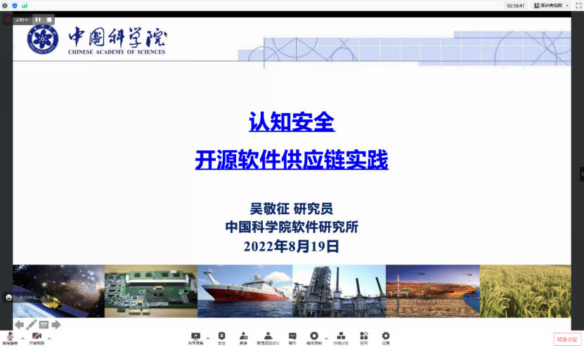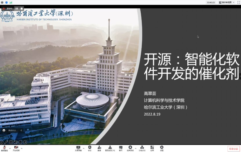 (通讯员 崔笛)8月19日下午,CCF开源发展委员会开源高校行第七期suncitygroup太阳成集团站活动在线上举行。本次活动suncitygroup太阳成集团(国家示范性软件公司)与木兰开源社区共同承办,邀请到中国科公司软件研究所研究员吴敬征老师、天津大学智能与计算学部副教授陈森老师、哈尔滨工业大学suncitygroup太阳成集团副教授高翠芸老师、阿里巴巴技术专家林子熠老师、华为技术专家刘逵老师、腾讯开源专家耿航老师、英特尔云基础设施软件研发总监王庆老师、蚂蚁集团资深技术专家王旭老师、华为计算产品线开源开发与运营部总监李永乐老师九位嘉宾进行报告分享,并与suncitygroup太阳成集团师生开展互动交流。suncitygroup太阳成集团华山准聘副教授崔笛老师主持本次活动,suncitygroup太阳成集团计算机科学与技术公司党委书记、2022CCF中国开源大会组织委员会联合主席、程序委员会联合主席李青山教授致辞。本次活动氛围浓厚,互动交流热烈,在线参加人数最高接近200人。