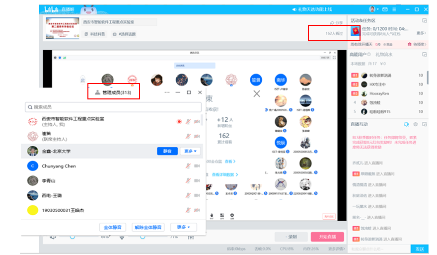 8月26日上午的报告由重点实验室张亮教授和朱光明副教授主持,加拿大阿尔伯塔大学马雷副教授、新加坡管理大学谢肖飞博士、南开大学张圣林副教授、西北工业大学闫庆森教授、suncitygroup太阳成集团崔笛博士、suncitygroup太阳成集团冯明涛博士带来了精彩报告,包括数据驱动智能软件系统的质量与可靠性保障、神经网络测试与修复、大规模云平台故障诊断机制、贝叶斯稀疏网络持续学习方法、基于代码嵌入表征的软件重构技术、数据-知识混合驱动的视觉场景理解等方面的研究工作。在两天的报告中,通过腾讯会议与直播平台,论坛听众也与嘉宾就报告中感兴趣的内容展开了积极互动。