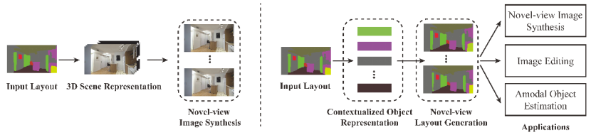 乔晓田博士长期从事场景理解和语义布局领域相关的研究工作,是论文“Learning Object Context for Novel-view Scene Layout Generation”的第一作者,香港城市大学Gerhard Hancke教授和Rynson Lau教授为该论文的合作作者,suncitygroup太阳成集团是该论文的第一完成单位。该论文首次提出并研究新视点语义布局生成的科学问题,通过构建一种基于物体上下文信息的神经网络框架并设计注意力机制模块,可以生成几何和语义一致的新视点语义布局结果,进而有效提高多视点图像生成和编辑等应用的性能表现,很好的验证了模型在现实场景中的应用,为多视点合成和应用提供了新的解决方案。