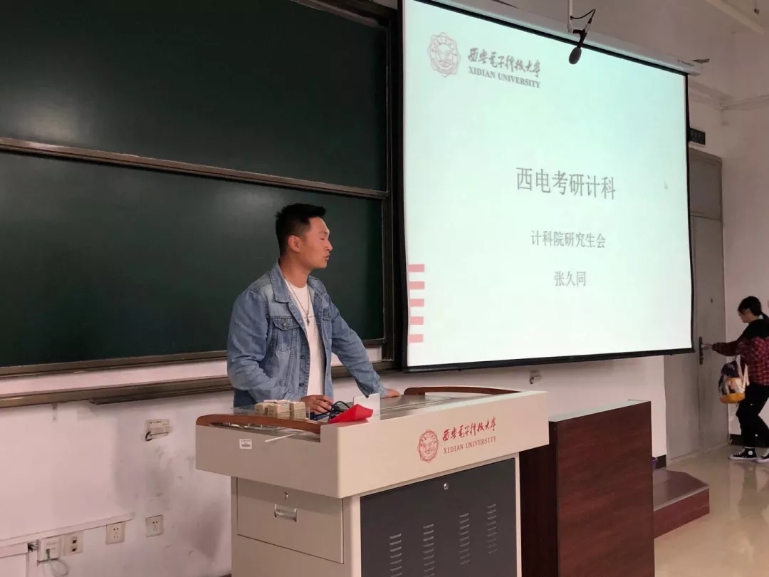 跨专业考入西电计科公司的陶知森,从考研的准备、初试、复试、经验四个方面详细的向同学们分享他的考研心得。他以自己的考研作息为例,鼓励大家踏踏实实的稳步向前。他认为,经验固然重要,但大家更多要结合个人实际情况,把握好自己的节奏,持之以恒、坚持到底。他说:“要放平心态,不骄不躁,学会与自己相处,不要自我感动,既要顶得住诱惑,也要耐得住寂寞。”