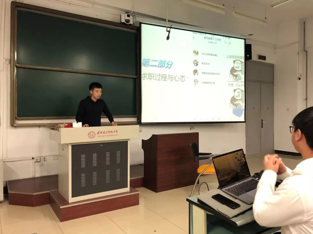 马博群分享了自己常用的几个求职网站,方便还在找工作的同学们对求职信息的获取。他特别向大家分享了自己的求职时间轴,七月上旬锁定岗位,中旬集中参加面试,一边面试一边总结,八月下旬便是等待结果。马博群给出三方面建议,一是要探索自己喜欢的职业,不要因为专业需求而做自己不喜欢的事情,合适才是最好的;二是在求职时候的心态很重要,要多与他人沟通,多行动,不气馁;三是在面试回答问题时,要有条理性,有针对性,才会得到面试官的认可。