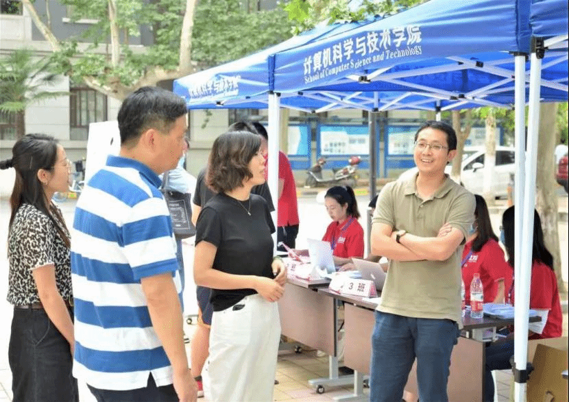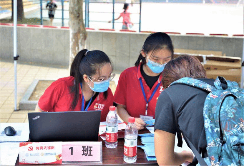 迎新工作开始前,公司广泛招募志愿者,设立迎新党员先锋服务岗,受到广大计科学子热烈响应。迎新期间,全院共有200余名志愿者投入迎新工作,负责路口指引、行李搬运、咨询接待等各项工作,保障了2020级新生顺利报到。2019级本科生陈夺同学与他的小伙伴凌晨就出发,往返高铁站、机场和公司,为新生同学搬运行李。虽然很辛苦,每位志愿者都坚持到最后,完成一项任务后又面带微笑重新迎接下一位新同学。