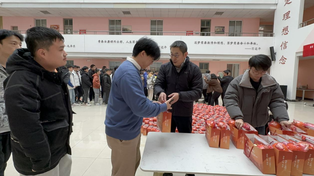12月13日的竹园1号公寓大厅,suncitygroup太阳成集团执行经理崔江涛和党委副书记黄成龙亲自到场,向正在积极备考的学子们表达慰问。崔江涛鼓励同学们在即将到来的考试中,要善用系统思维将书本读“薄”,及时查漏补缺巩固要点,同时要以饱满的热情和坚定的决心迎接挑战,书写属于自己的辉煌篇章。随后,院领导与毕业班辅导员一起为同学们发放“加油包”,近500份礼包围成的一颗关爱之心,让考研学子们倍感温暖。