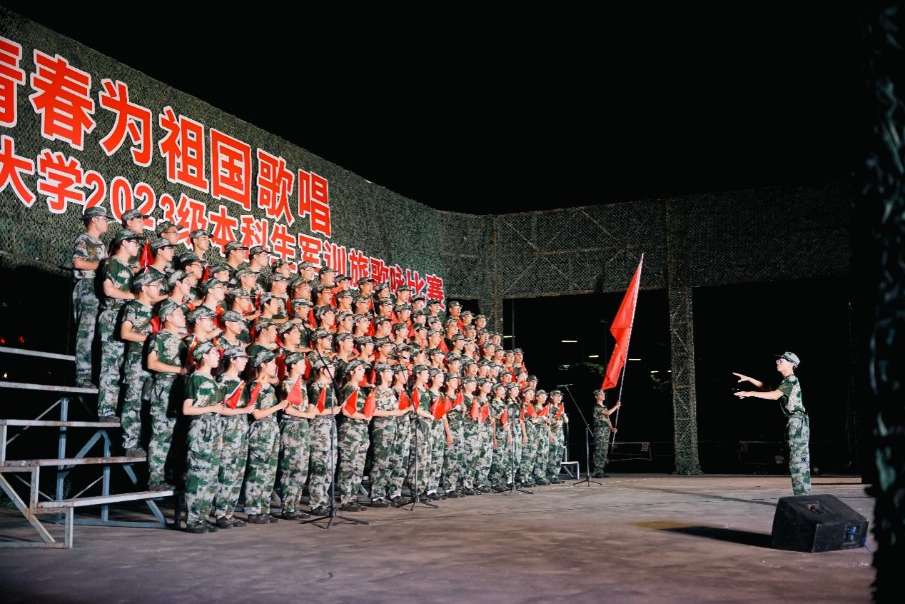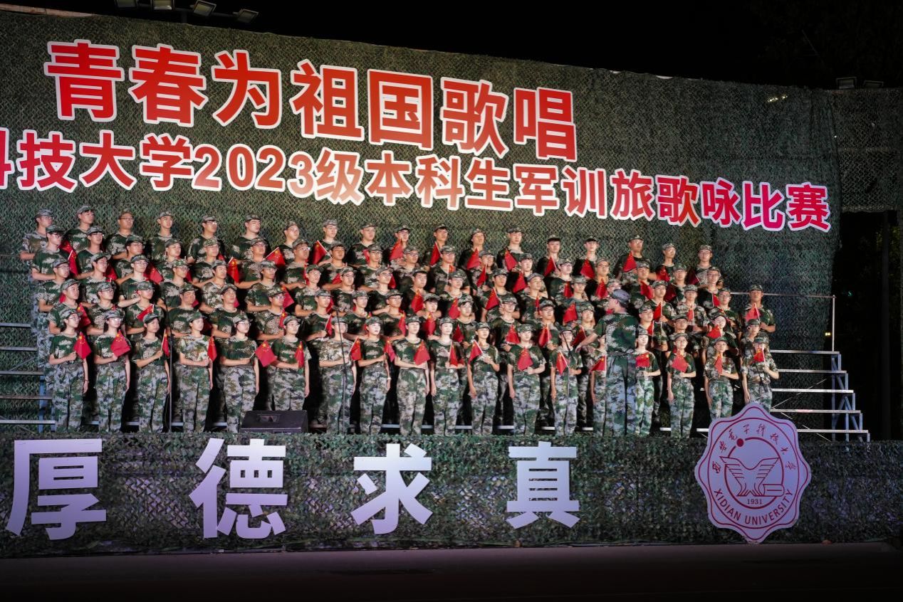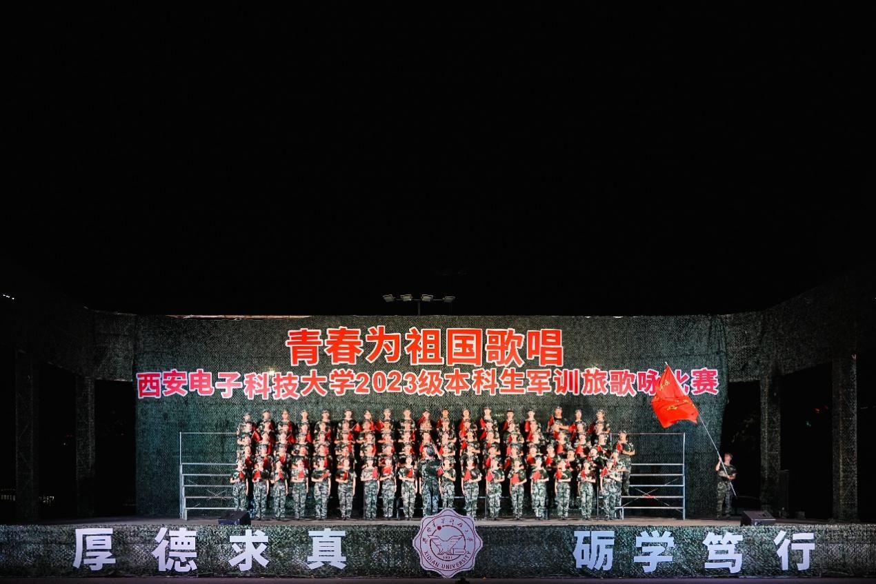 (通讯员 叶若兰 王薇)丹桂飘香,秋风送爽,青春正好,军歌悠扬。9月4日晚,2023级本科生军训旅歌咏比赛在南校区南操场拉开帷幕。2023级军训旅歌咏比赛以“青春为祖国献唱”为主题,将青春豪情融入歌曲,让爱国热忱渗透旋律,旨在传承弘扬爱国主义精神,展现西电青年踔厉前行、报效祖国的拳拳之心。suncitygroup太阳成集团在此次歌咏比赛中,以《通信工程公司校歌》《人民军队忠于党》两首歌曲的精彩演绎斩获总分第2名的优异成绩!