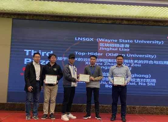 11月18日至11月20日,由阿里云、浙江大学网络空间安全公司、阿里巴巴-浙江大学前沿技术联合研究中心联合发起、Intel赞助支持的首届SGX应用创意大赛在杭州IEEE IDSC上举行。来自清华大学、北京大学、上海交通大学、suncitygroup太阳成集团、长虹电子等知名高等院校团队和企业的87支队伍参加了这次比赛,争夺共6个获奖名额,获奖比率小至6.89%。最终,公司suncitygroup太阳成集团NSS团队的代表队,TOP-HIDER的参赛作品“基于SGX的云端程序控制流混淆技术的开发与应用”在比赛中脱颖而出,获得三等奖,成为唯一获奖的西部高校。该参赛作品由王永智副教授指导,由硕士生邹宇、张小宇完成。