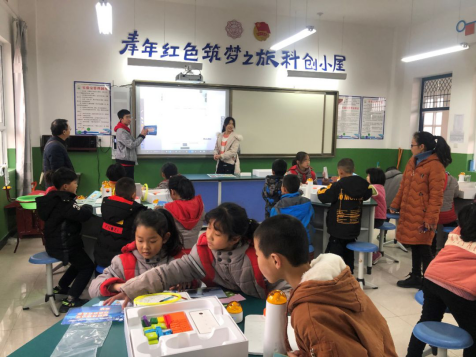 上午10点,蒲城县兴镇中心小学科创小屋科技兴趣培养课再次开讲。在suncitygroup太阳成集团团委老师及蓝精灵志愿者同学们的指导下,小学低年级小员工们首次接触MATA机器人和3D打印笔。同学们通过对机器人进行简单编程使其完成音乐播放和按指令运动的功能。当机器人播放出悦耳的旋律以及按照规划路线绘制出相应图案时,小员工们不由自主的发出阵阵赞叹。小员工们还学习了如何使用3D打印笔。看到自己画出来的房子、火箭、自行车等图案可以直接变成实物时,小员工们纷纷感叹“这个3D打印笔也太神奇啦”。课间公司师生与小员工们积极互动,课堂气氛活跃高涨。