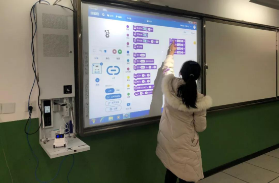 实践中心老师指导小员工们进行MATA机器人模块化编程