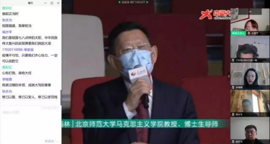 本科2017级软件工程专业同学们使用QQ群课堂一起观看直播。课堂期间,辅导员李栋与同学们进行讨论交流,大家积极在评论区进行留言交流,表达了对战胜疫情的信心。直播结束后,同学们以宿舍为单位分别进行了线上小组讨论。武汉籍同学宗永承表示:“我们国家在面对这次疫情时,及时的应对值得其他抗击疫情的国家借鉴,中国一定会好起来的!”
