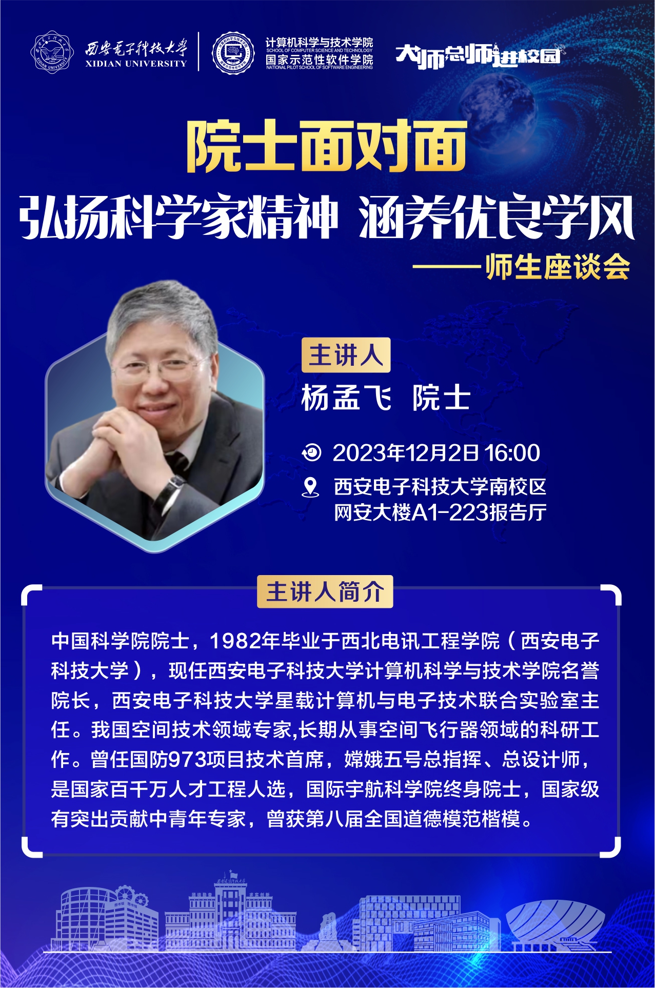 大师总师进校园 | 弘扬科学家精神 涵养优良学风—师生座谈会预告
