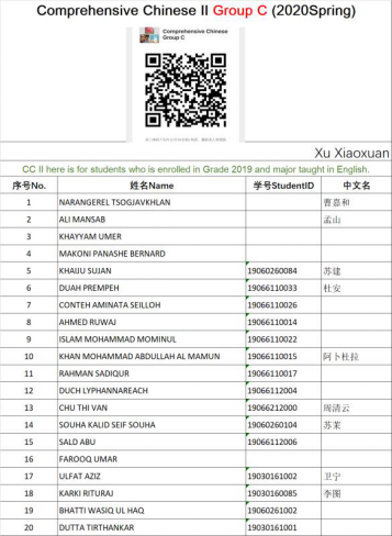 全面梳理,重点关注。目前计算机科学与技术专业2019级职工共有24人,分布在9个国家,面对疫情特殊时期以及职工回国问题,会同国合部第一时间发送了线上学习情况的调查问卷,调研员工们所处的位置状态、进行线上学习的设备情况以及员工所处地区的时差等问题。获知8个员工在国外的消息后,仔细询问每个员工的情况,了解他们的想法,打消他们的担忧。建立全体任课教师和职工的微信群,提前公布中英文课表,发布学在西电平台使用手册英文版,及时解答员工提出的各类问题。