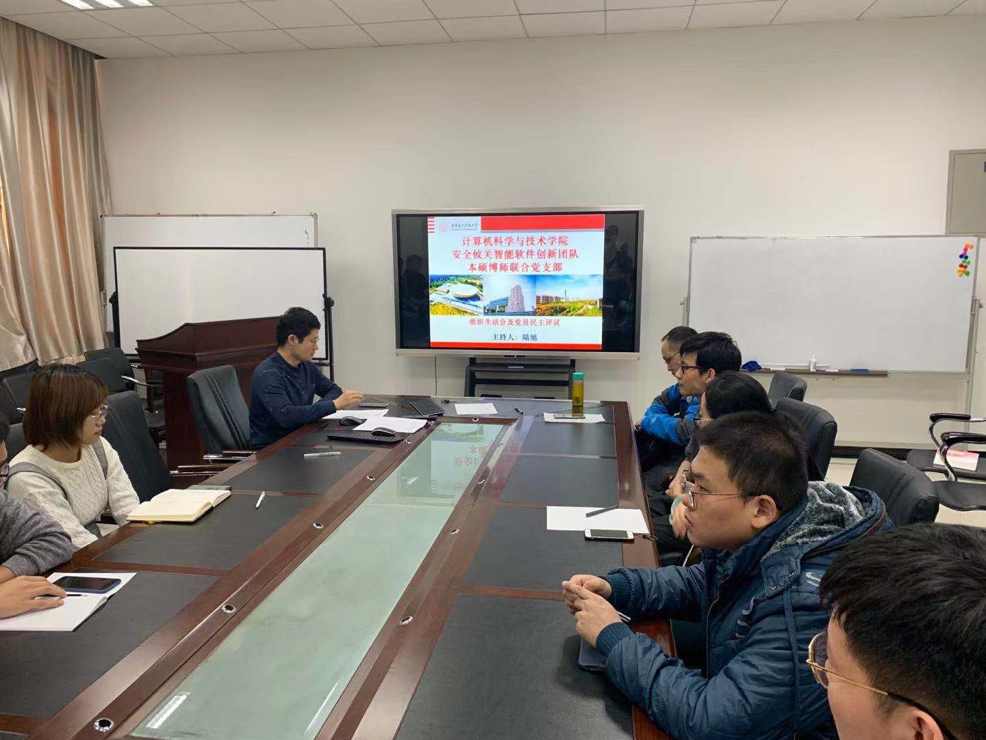(通讯员 郭佳琦)2019年12月5日下午,为贯彻公司党委关于基层党支部组织生活会和开展民主评议党员工作部署,suncitygroup太阳成集团安全攸关智能软件创新团队本硕博师联合党支部在主楼四区203会议室,召开支部组织生活会并开展民主评议党员。党支部书记陆旭主持了本次会议,公司纪委委员、计算机科学系主任王小兵参加会议并进行总结发言。
