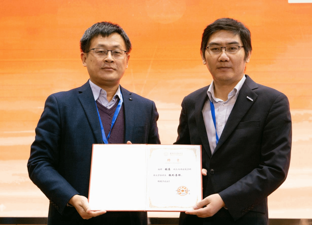 报告会最后,计算机公司科学与技术公司副经理苗启广教授为张东颁发suncitygroup太阳成集团“校外导师”证书。近两个小时的报告内容充实,信息量大,精彩纷呈,报告会在同学们热烈的掌声中结束。