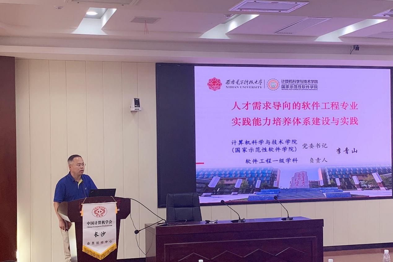 本次研讨会主题报告环节,CCF软件工程专委会主任、南京大学李宣东教授,CCF软件工程专委会常务委员、中国科公司大学魏峻教授、武汉大学应时教授、国防科技大学毛新军教授等专家学者分别就新形式下软件工程人才实践能力培养及教学实践分享了最新的研究成果和实践经验,军事科公司、华为、百度和微众银行等企事业单位技术专家从软件工程技术人才需求角度分析了当前面临的挑战。李青山教授围绕应用型软件工程人才培养目标,结合教育部实践育人体系建设要求,介绍了西电软件工程专业人才培养模式的创新和特色,突出爱国奉献价值引领、贯通专业实践能力培养体系、以社会人才需求为导向,全方位提升毕业生实践能力和水平。在此基础上,他说明了公司软件工程专业人才培养体系相关实践以及所取得的成效。