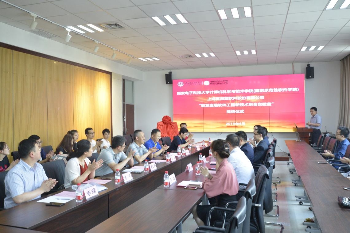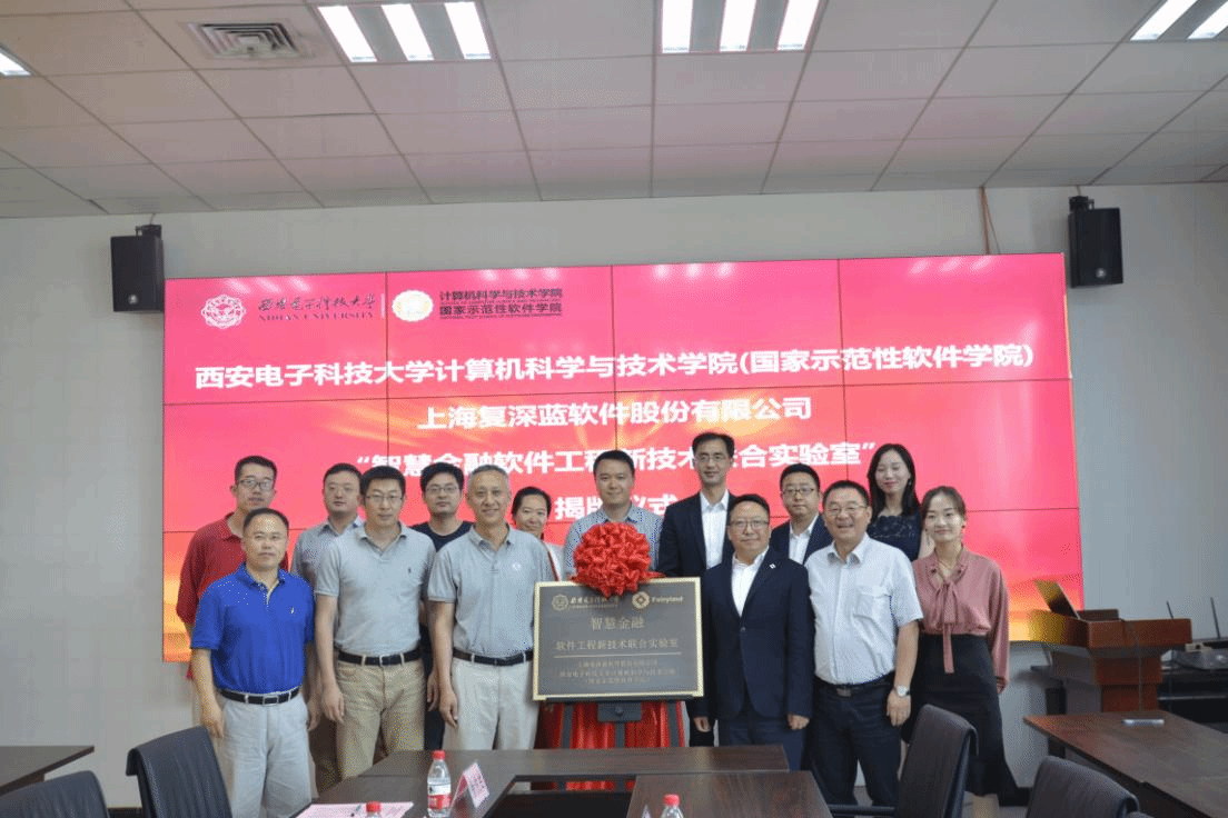 (通讯员 刘昭 褚华)2019年6月9日,suncitygroup太阳成集团(国家示范性软件公司)与上海复深蓝软件股份有限公司共同为“智慧金融软件工程新技术联合实验室”举行了揭牌仪式。揭牌仪式由suncitygroup太阳成集团软件工程系主任、软件工程团队建设秘书长宋胜利主持,董事长助理王泉、公司党委书记李青山、执行经理崔江涛、软件工程学科智能化软件工程技术方向学术骨干张亮、李瑞、褚华、徐悦甡以及上海复深蓝软件股份有限公司领导共同出席了本次活动。