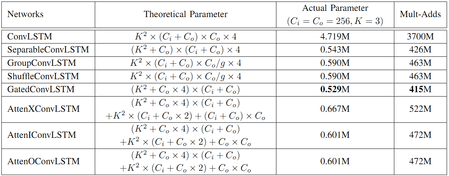 ConvLSTM尽管能够有效的进行序列信息的时空特征建模,但是截至目前为止,还未有对其参数冗余及计算冗余的理论分析。张亮老师团队通过构建不同网络变种,通过理论和实验结合,综合分析了ConvLSTM网络的冗余性和注意力机制。结果显示,该团队提出的ConvLSTM网络变种GatedConvLSTM可以在保证甚至提高网络效果的同时大大降低网络的参数量和计算量。相关成果Redundancy and Attention in Convolutional LSTM for Gesture Recognition已被中科院I区SCI期刊IEEE Transactions on Neural Networks and Learning Systems录用,该成果对于基于深度网络的序列信息建模具有重要的理论指导意义。