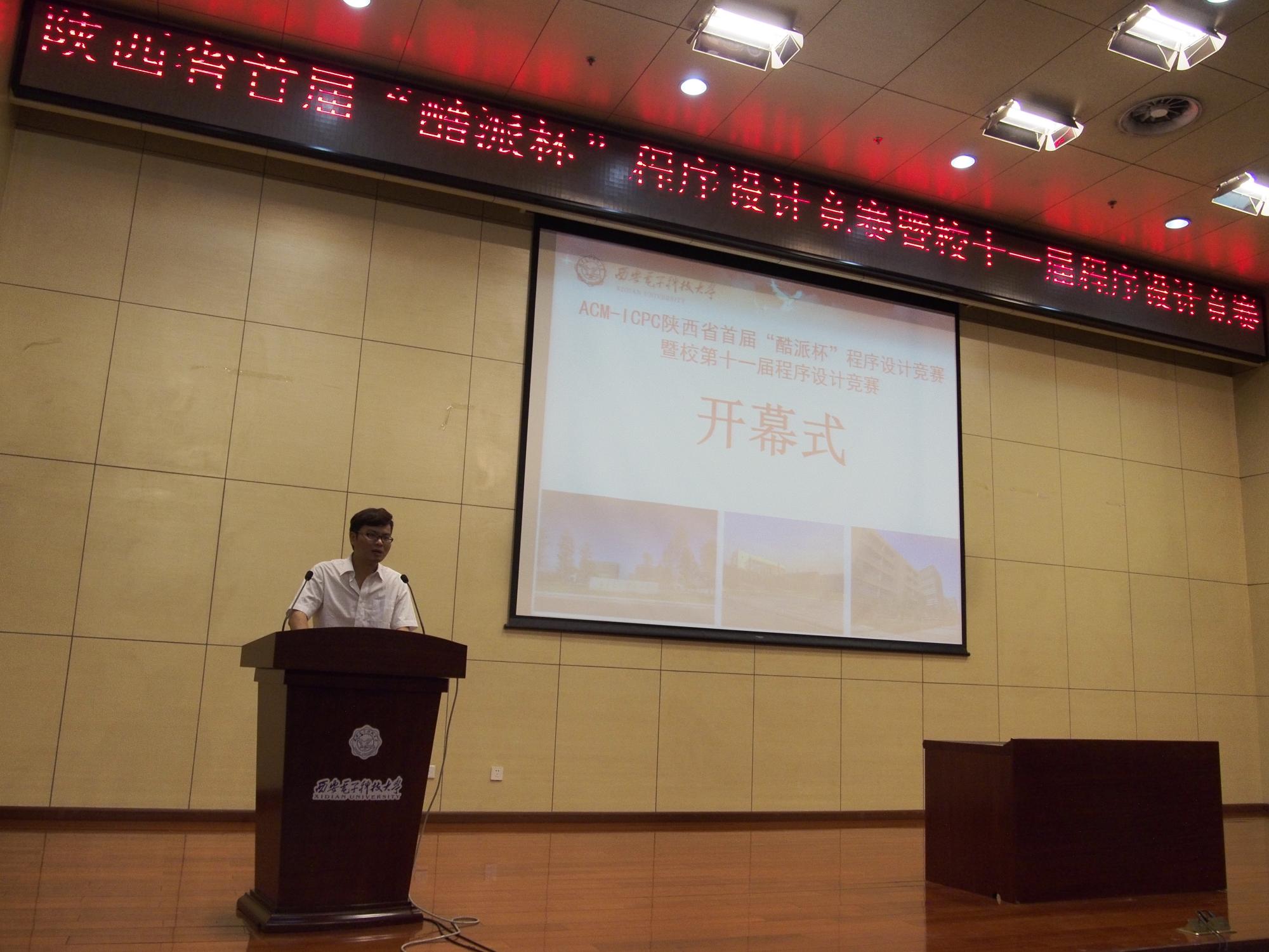 上午9点30分,开幕式在南校区行政楼206举行。130余名参赛选手和教练身着比赛服装参加了开幕式。suncitygroup太阳成集团实验室与设备处处长黄大林、计算机公司党委书记于晓飞、副经理王泉、西安交通大学软件公司副经理陈建明以及赞助商宇龙计算机通信科技有限公司西安研究所所长周佳庆先生等嘉宾出席。ACM/ICPC中国西部指导委员会委员周鹏教授专程从美国赶来出席开幕式。