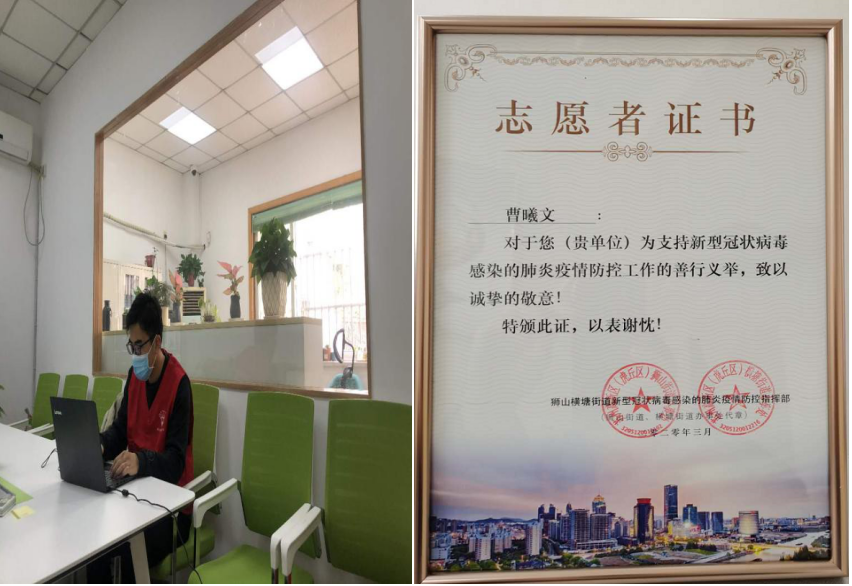曹曦文同学说道:“得知疫情的严重性后,我也没有多想,只是觉得对小区环境熟悉了解,在社区工作站工作,可以帮助到更多的人。相比那些奔赴前线的优秀青年志愿者们,我做得很微不足道。而作为一名老员工,一名党员,应该像那些志愿者们学习,在祖国最需要的时刻,为抗疫工作贡献上自己的力量,利用自己专业所学对社区数据进行统计、整理和分析,做一些实实在在的事情。工作期间是充实的,也收获了满满的感动,当得到社区居民真诚的感谢时,我内心那种帮助他人解决困难的喜悦是难以言表的,感觉自己是真切的被大家所需要,真正的实现了自己的人生价值。”