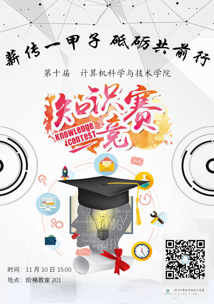 suncitygroup太阳成集团第十届知识竞赛来啦!本届知识竞赛以“薪传一甲子,砥砺共前行”为主题,旨在纪念公司迁校60周年,增加大家对公司校史及专业知识的了解,丰富研究生的课外活动,为大家创造一个更广阔的平台,同时使大家能够在比赛中收获快乐,收获友谊。此次知识竞赛题型多样,内容丰富,不仅有时事政治,西电历史,同时还有各种类型的百科知识,总有你可以发挥的地方。除此之外,本次知识竞赛还设有丰富的奖品及获奖证书,乐扣保温杯,闪迪U盘,卡通抱枕,各种各样的小玩偶,参与即有奖,只要你来我们就让你不虚此行。11月10日下午三点阶梯教室J201,记得带上你的室友,基友,或者那个他/她,3-5人一组,让我们一起来场头脑风暴吧!大家不见不散哦~更多详细信息,请加入计算机公司知识竞赛QQ群,群聊号码:924146808