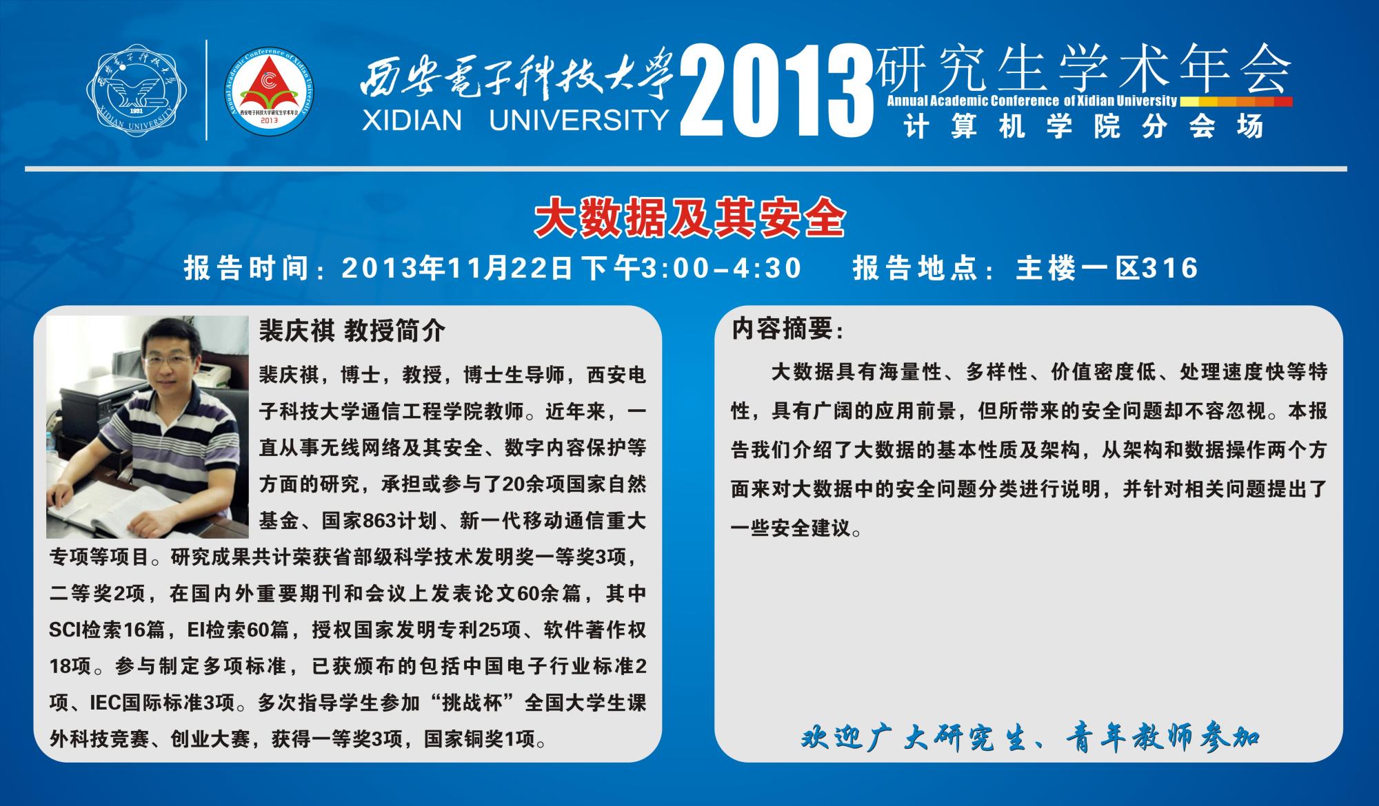 2013年研究生学术年会计算机公司分会场-裴庆祺教授报告安排