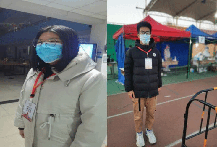 党支部的入党积极分子也积极响应,为身边同学服务。卢凤芩负责在宿舍大厅检查进出宿舍楼的同学的出入证,并做好沟通和劝导。“我坚信没有永被禁锢的城,只有矢志不渝的爱。封楼确实给我们的生活带来了一些不便,我在值班期间尽可能保持亲切温暖,希望能缓解个别同学的焦躁情绪。我的工作比起一线奋斗的党员战士们颇显微薄,希望他们一切安好,我也会继续做好志愿工作,以实际行动践行入党信念。”李腾作为小组组长参与了公司核酸检测的志愿工作,协调志愿者同学们分工明确,保证队伍的有序性,最大程度地提高核酸检测工作的效率。“我工作的时间是傍晚,仅仅两个小时便感到很难承受这样的低温,可想而知医护工作者坚持一整天的辛苦,我真的很钦佩和感谢他们的无私奉献。相信有他们这样的人在,疫情一定会很快结束。”