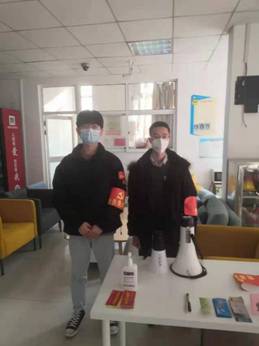 党支部预备党员任腾宇同学也第一时间在南校区报名参加了志愿者,“在这个关键时刻,我深知作为一名预备党员的责任,所以尽力贡献一份微薄的力量。”任腾宇负责海棠七号楼员工出入宿舍楼的检查,同时帮助协调有必要生活需求的同学。虽然工作任务不多,但他在寒冷的宿舍门口站立四个多小时,仍一直保持着坚定的眼神与负责的工作态度。任腾宇说:“我们尚且如此,在外的医护人员只会更加辛苦。”他还观察到楼层大厅循环播放着防疫标语,其中“坚守城邦”格外醒目,这也让任腾宇的心中更加明白:“是啊,每一个人都在努力守护着,守护着自己的家园。”