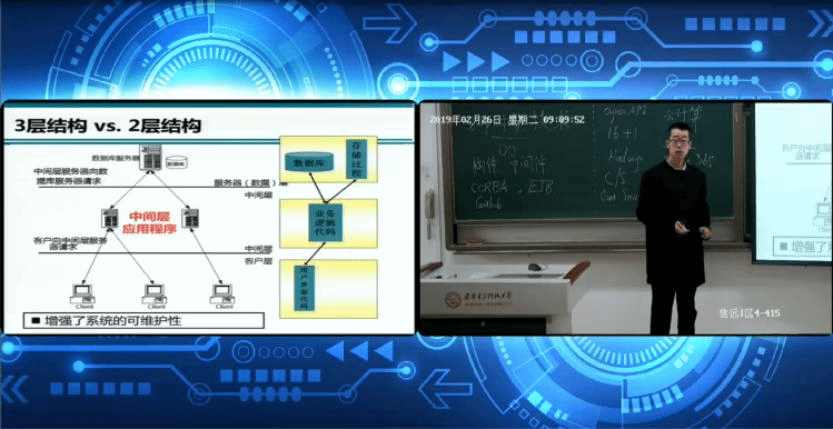 A: 因为和全班同学经过了一系列测试,包括对于不同直播平台、PPT和教案的播放、我这边电脑摄像头的朝向等等,所以第一次直播的时候并没有很紧张。另外,和120多名同学一起走过上学期《数据管理技术》的学习,彼此也比较熟悉,更降低了这种紧张度。平常心的应对一是在于工具与流程的熟悉,二是在于人的熟悉,到目前为止,这两点还可以