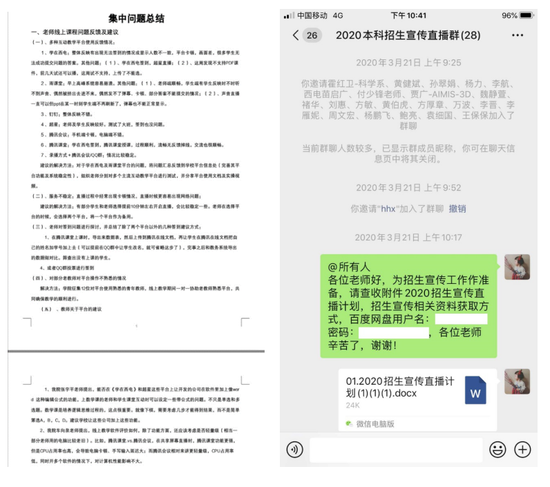 为确保教学质量,全面了解线上教学情况,公司成立了以8位院领导和办公室主任为主体的线上教学督导组,4位教务干事每人负责对接2个研究所,针对8个研究所的suncitygroup太阳成集团全体老师形成“网格化”督导模式。马继红老师负责软件工程研究所和智能软件与系统新技术研究所,上课前,马老师会把所有课程的链接、二维码、课堂暗号等收集到,然后发到督导群。通过辅导员、线上督导组、教务干事等渠道,随时收集员工对教学质量的反馈意见,发现问题,解决问题,做好线上教学的自我监控和员工的舆论引导工作。在全体教务老师的共同努力下,线上教学至今,未发生一起教学事故。