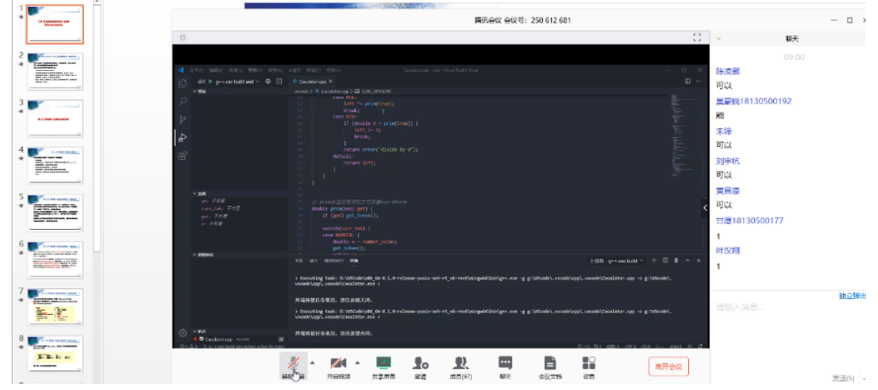 ②课堂实时互动:褚老师使用腾讯会议搭建了课堂实时互动平台,同学们可以自由发言、共享屏幕或者在留言区发言,表达自己的思路,提出不理解的问题等。老师则及时为同学们解答问题,争取课堂上不留疑惑。