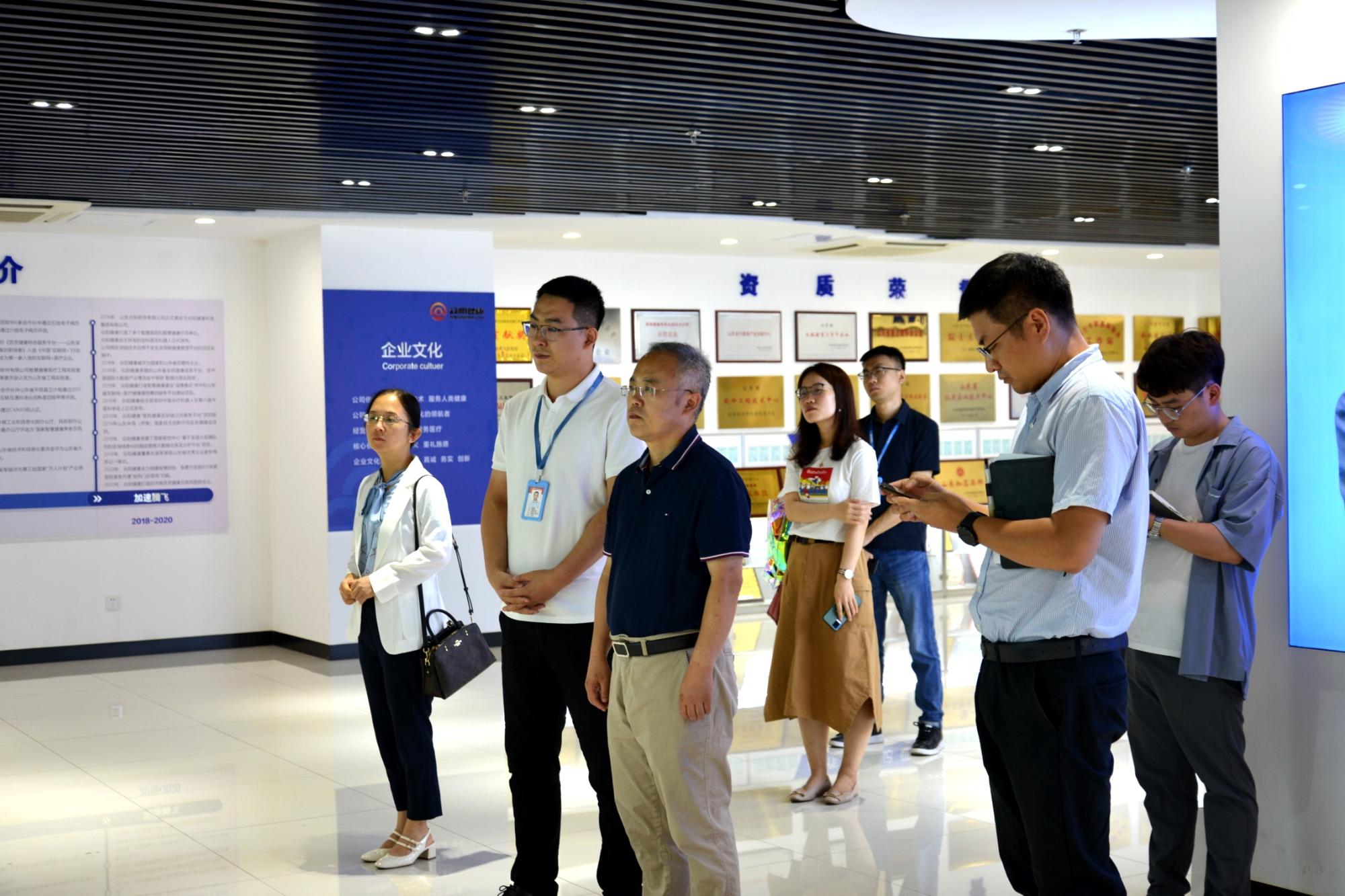 7月19日下午,公司一行前往众阳健康科技集团有限公司开展调研交流。在工作人员的引导下,公司一行集体参观了企业展厅,近距离感受众阳健康20余年间初创成长、做强做优、加速腾飞的发展历程,详细了解了企业在智慧医院、智慧健康、互联网+医疗健康、智慧医养、人工智能方面的产品体系,以案例分享形式了解了企业在打造融合民生服务和科技产业亮点标杆中的探索与实践。