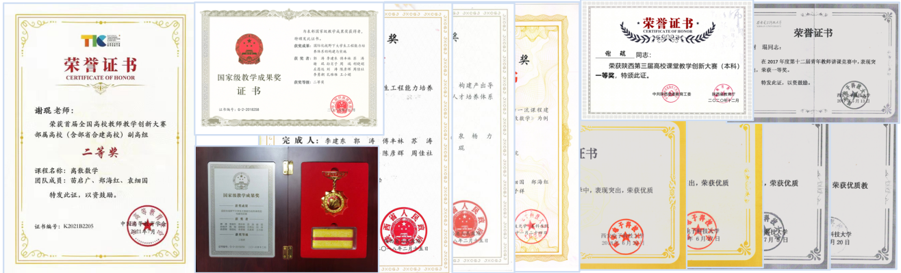 矢志创新,推动教改。在长期的一线教学工作中,谢琨同志积累了大量的经验,进行了深入的人才培养和本科教学工作的探索与实践。近五年主持教育部、省校级教改项目12项,其中省级重点项目4项,作为主要完成人参与教学改革项目8项;在CSSCI、中文核心等期刊发表教改论文9篇。作为课程负责人获首批陕西省线下一流课程1门,2021年被推荐国家级线下一流课程评选(在评)。经过长期的探索实践,教学改革成绩显著:获首届全国高校教师教学创新大赛二等奖(西电唯一),国家级教学成果奖二等奖,陕西省教学成果特等奖、一等奖、二等奖各1项,陕西省高校课堂教学创新大赛一等奖,第三届全国“互联网+”老员工创新创业大赛优秀导师奖和首届全国“互联网+”老员工创新创业大赛陕西赛区优秀导师奖,陕西省高校教师微课教学比赛三等奖,suncitygroup太阳成集团第十二届讲课竞赛一等奖,suncitygroup太阳成集团优秀教学质量奖一等奖等校级以上教学奖项近30项。