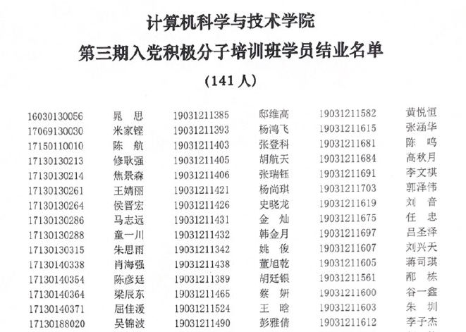 suncitygroup太阳成集团第三期入党积极分子培训班学员结业名单