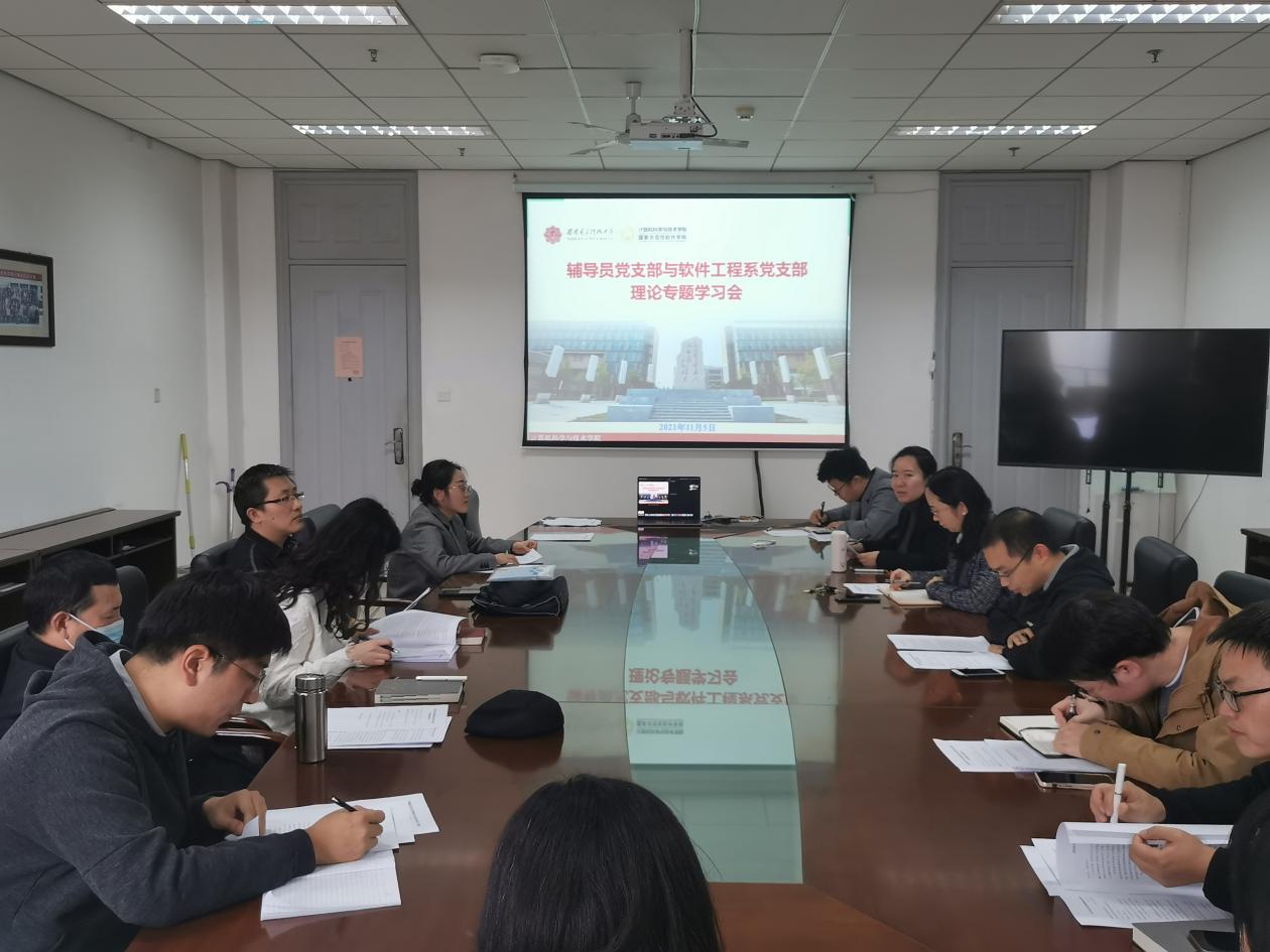 (通讯员 王牌)为促进支部联合共建,强化员工工作、课程教学、科研平台等多方力量的协同联动。11月5日下午,suncitygroup太阳成集团辅导员党支部与软件工程系党支部在西电南校区G楼514联合召开理论专题学习会议。会议就习近平总书记在纪念辛亥革命110周年大会上的讲话、习近平总书记在中华人民共和国恢复联合国合法席位50周年纪念会议上的讲话展开学习,并立足工作实际就课程思政、学业指导、学科竞赛等方面工作展开交流讨论。会议由辅导员党支部书记梁双杰主持,支部全部成员“线上+线下”参与会议。